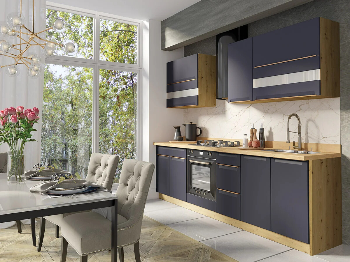 LUX - s příplatkem - šuplíky s technicky dokonalejšími pojezdy HAFELE. Výklopná dvířka s písty Blum s nastavením zvedací síly. Tlumiče pro tiché dovírání. Závěsy skříněk se zpomalovačem. Výškově regulovatelné spodní nožky. Nastavitelný závěs pro horní skříňky.