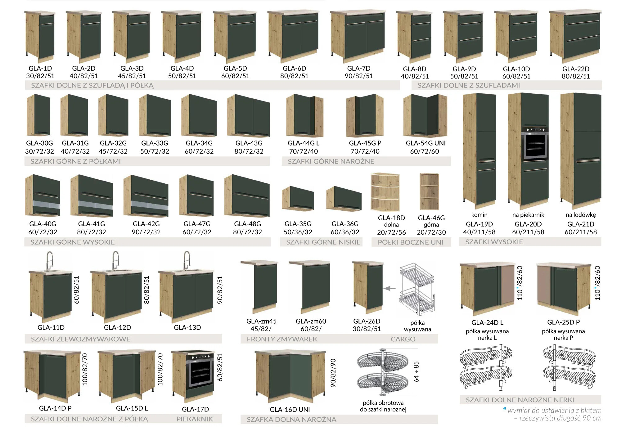 Spodní kuchyňské skříňky se dodávají bez soklu a bez pracovní desky, které si můžete vybrat z naší nabídky.