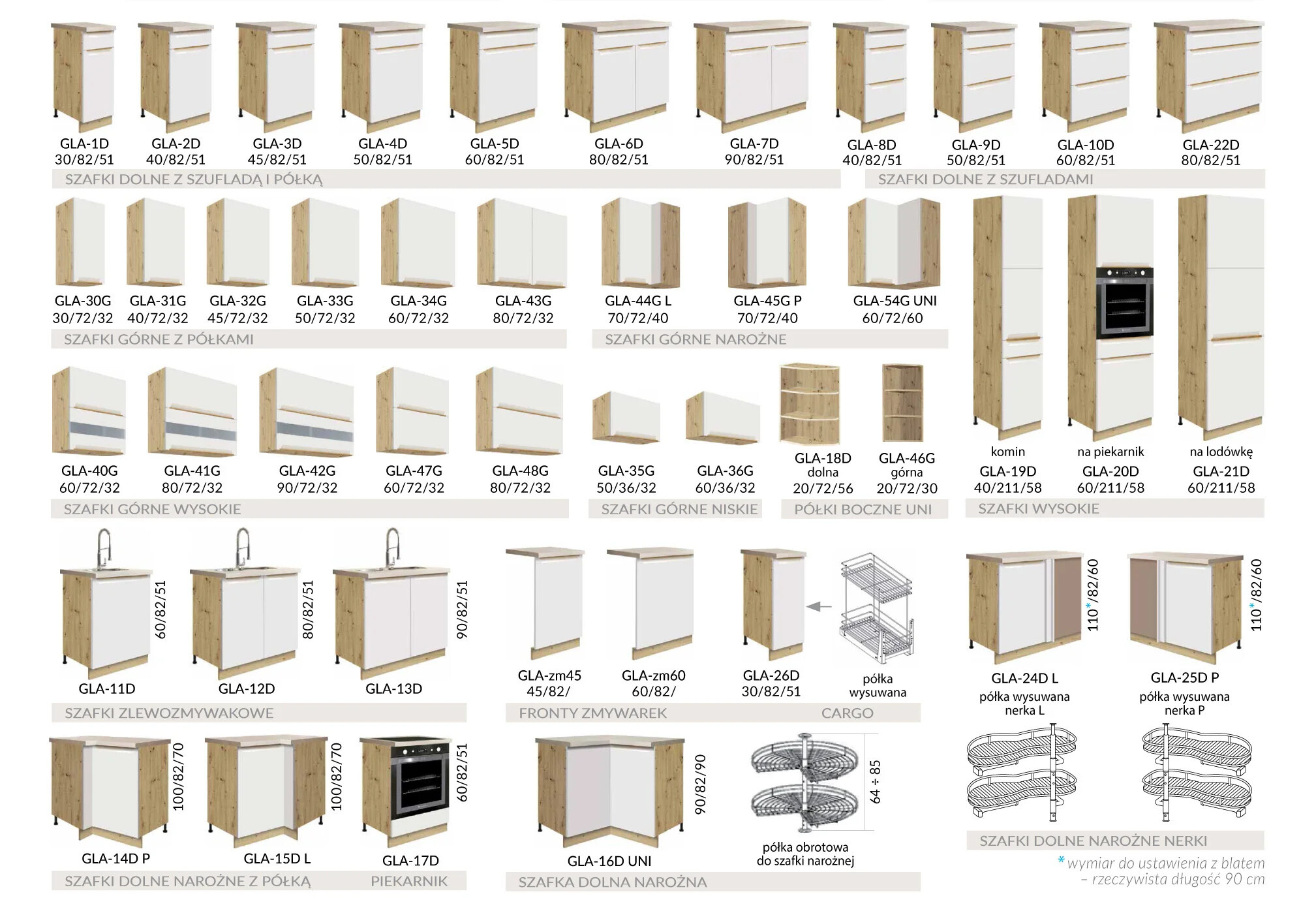 Spodní kuchyňské skříňky se dodávají bez soklu a bez pracovní desky, které si můžete vybrat z naší nabídky.