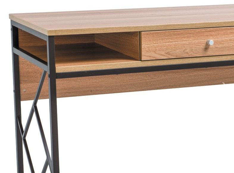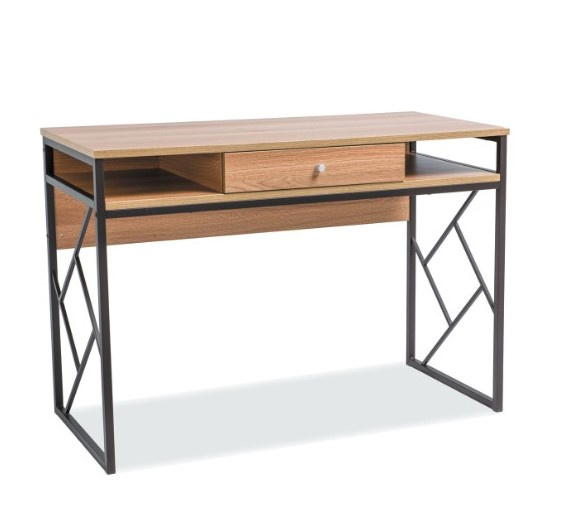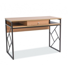 Jednoduchý, ale praktický psací stůl NORMA se hodí do menších pokojů či kanceláří. Poskytuje dostatečný prostor pro PC, klávesnici a vše co potřebujete k práci s počítačem. Konstrukce je kovová v tmavě hnědé barvě, desky jsou z kvalitní MDF v barvě dub. Stůl je opatřen zásuvkou, vhodnou pro uložení různých drobností.