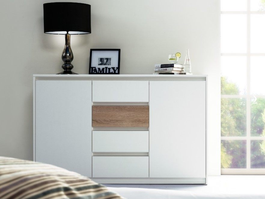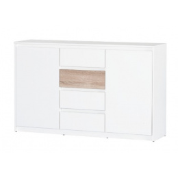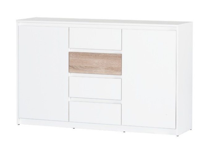 NORMAN komoda - kombinovaná, plná dvířka s policemi, 4 úložné zásuvky