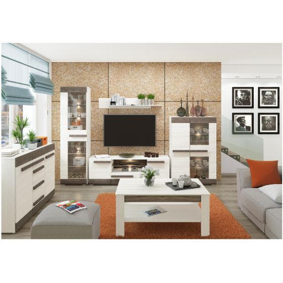 Systém BLANCO je moderní nábytek s přirozeným zabarvením, které poskytuje mnoho variant pro praktické uspořádání. Kombinace bílé a šedé borovice je perfektní jak pro moderní obývací pokoj, tak i pro vybavení pokoje teenagerů. Unikátní design dřevěných rukojetí dává nábytku charakter a styl. Sektor Blanco je praktické, originální řešení neobvyklého designu pro vybavení Vašich pokojů.