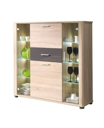 Moderní nábytkový systém FILL se skládá ze sedmi samostatných dílů. Sami si tak můžete sestavit obývací pokoj. Sektor FILL se vyrábí z kvalitního lamina v barevné provedení dub sonoma / grafit lesk. LED osvětlení není součástí obývací stěny, je možno jej dokoupit.