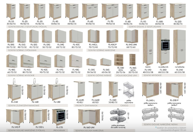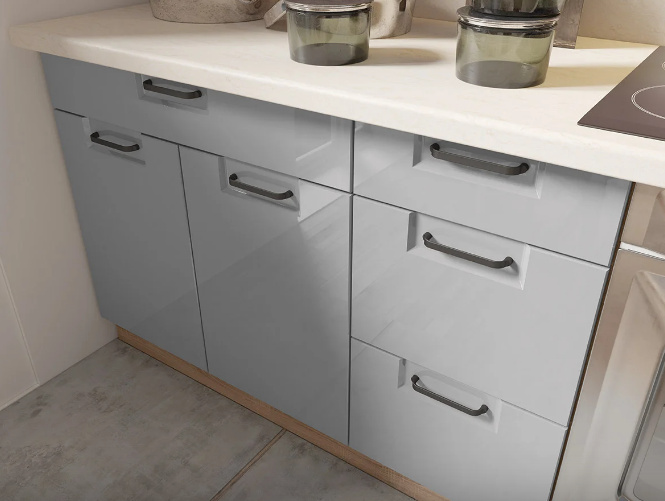 Spodní kuchyňské skříňky se dodávají bez soklu a bez pracovní desky, které si můžete vybrat z naší nabídky.