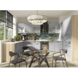 Kuchyňské skříňky jsou dodávány v demontu s návodem k montáži. Bez dřezu, vodovodní baterie, spotřebičů a dekorací.
