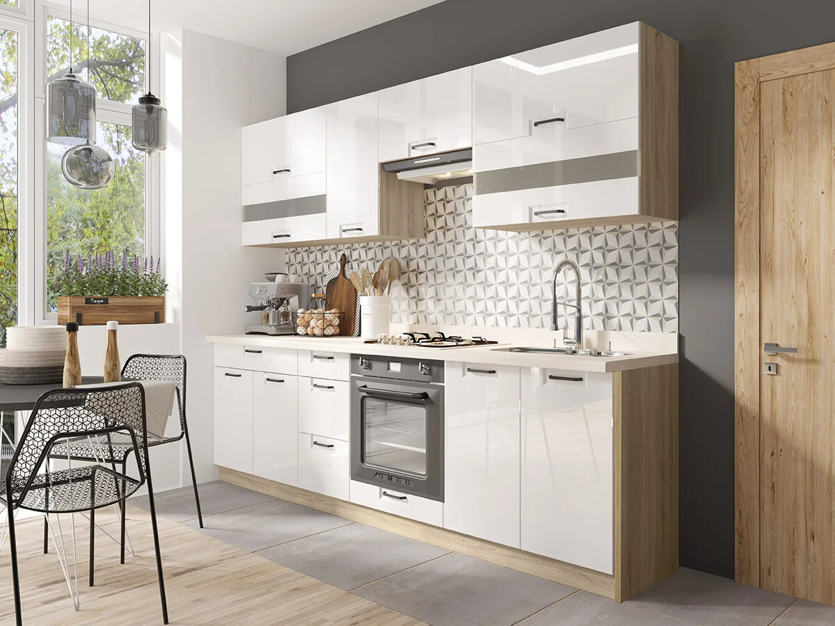 Moderní kuchyňská sestava OLIVIA s dvířky v atraktivním barevném provedení, je ideální volbou, pokud Vám nevyhovují nabízené kuchyňské sestavy. Linku OLIVIA si můžete sestavit z jednotlivých dílů podle vlastních představ. Součástí kuchňského systému jsou všechny skříňky, bez kterých se žádná kuchyně neobejde. Kuchyňská linka OLIVIA je vyrobena z kvalitního lamina. Šuplíky dolních skříněk jsou opatřeny kvalitními pojezdy a kováním. Dvířka mají tiché dovíraní (GTV). Dvířka a šuplíky májí výrazné kovové úchyty. Pokud chcete sestavu podle vlastních rozměrů vyberte si kuchyňskou linku na míru OLIVIA.