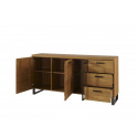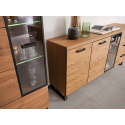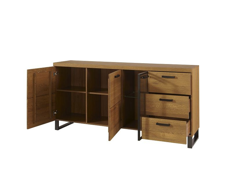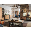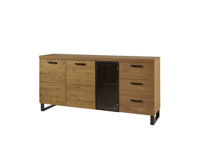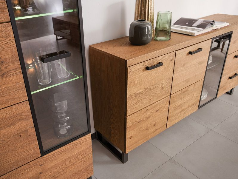Elegantní spojení kovové podnože a masivního dřeva, tím se vyznačuje industriální styl systémového nábytku ORLY. Tímto originálním nábytkem skvěle zařídíte moderní obývací pokoj i jídelnu. Podnož sektoru ORLY je vyrobená z kovu v černé barvě. Korpus je dýhovaný. Dvířka a čela šuplíků jsou z masivního rustikálního dubového dřeva. Povrch masivu je upraven hlubokým kartáčováním.
