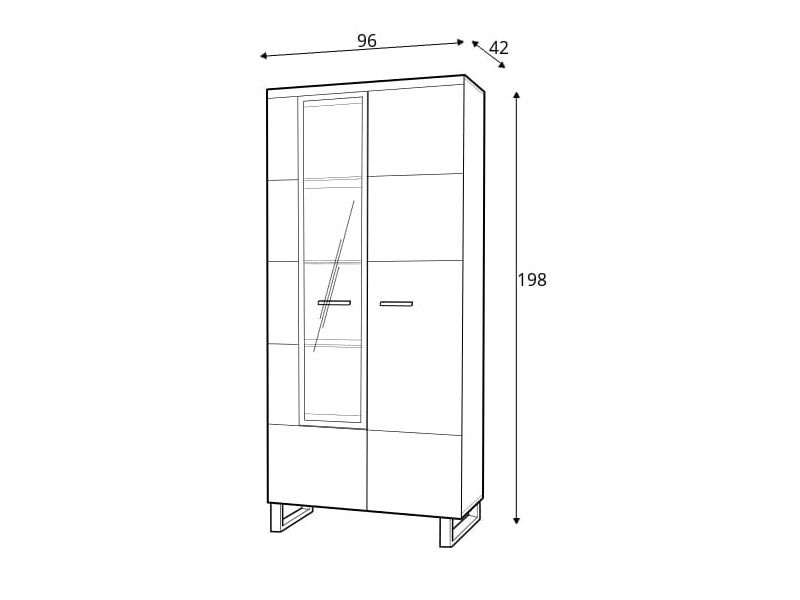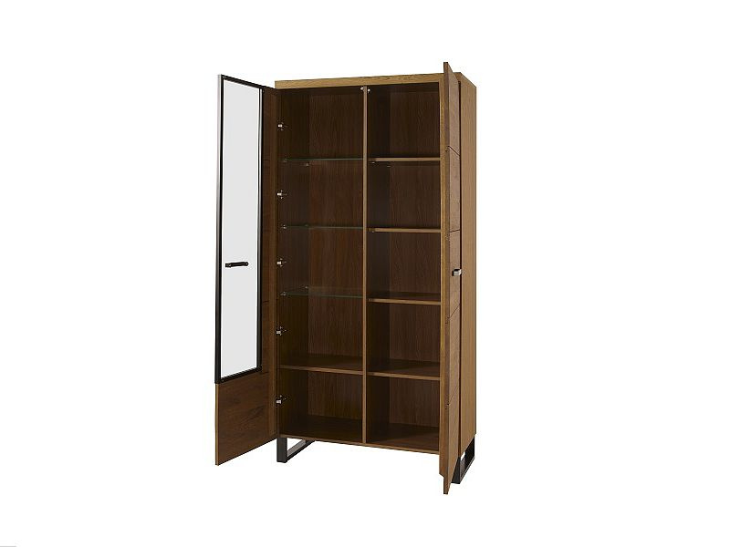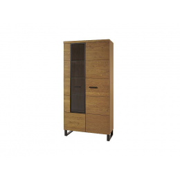 ORLY vitrína vysoká - je dvoudvířková s policemi, částečně prosklená. Za prosklenou částí jsou police skleněné a můžete je doplnit LED osvětlením.