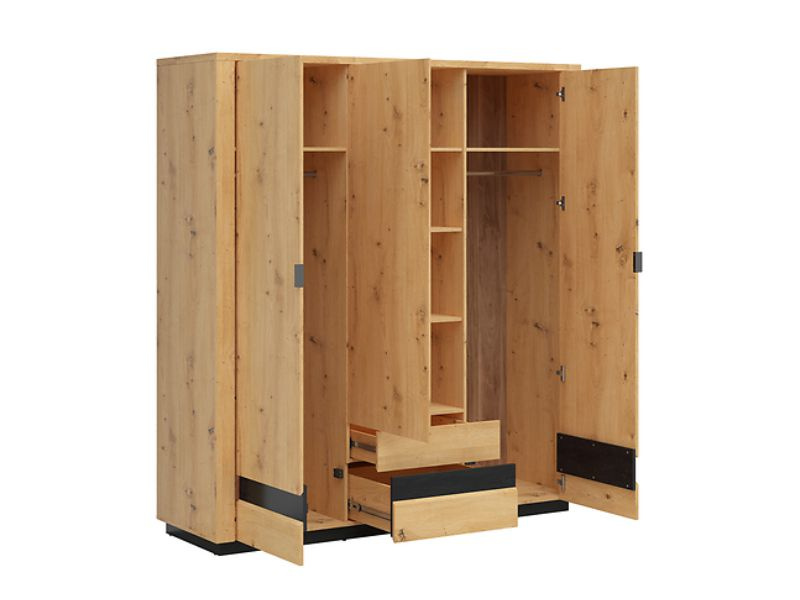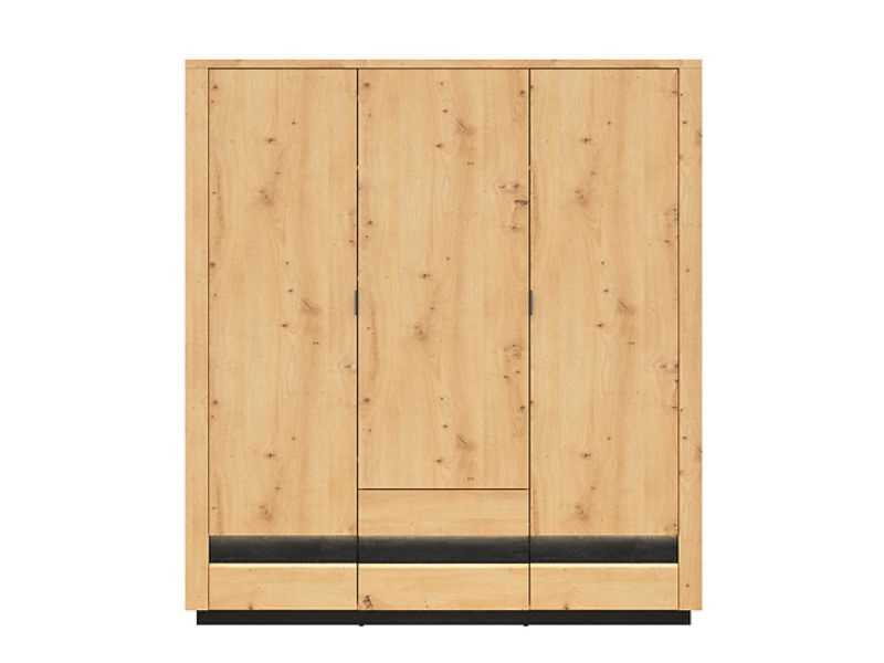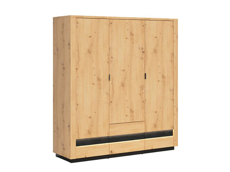 Šatní skříň ze systému OSTIA - třídveřová (šatní tyče, police), dole 2 prostorné zásuvky