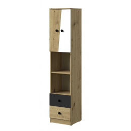 Díky systému PERCY vytvoříte plnohodnotný pokoj se vším všudy. Systémový nábytek PERCY je vyroben v neutrálním barevném provedení dub artisan/bílý mat/černý mat, díky čemuž se hodí jak do pokojů dívek, tak i chlapců a lze jej jednoduše doladit barevnými doplňky. Díky dalším zásuvkám, poličkám v posteli a přihrádkám v pracovním stole je nábytek PERCY ještě funkčnější. Jde o perfektní řešení, pokud se potýkáte s malým prostorem, kde zvažujete zaplnění každého volného místa. S kolekcí PERCY bude pokojíček hravý, plnohodnotný a moderní.