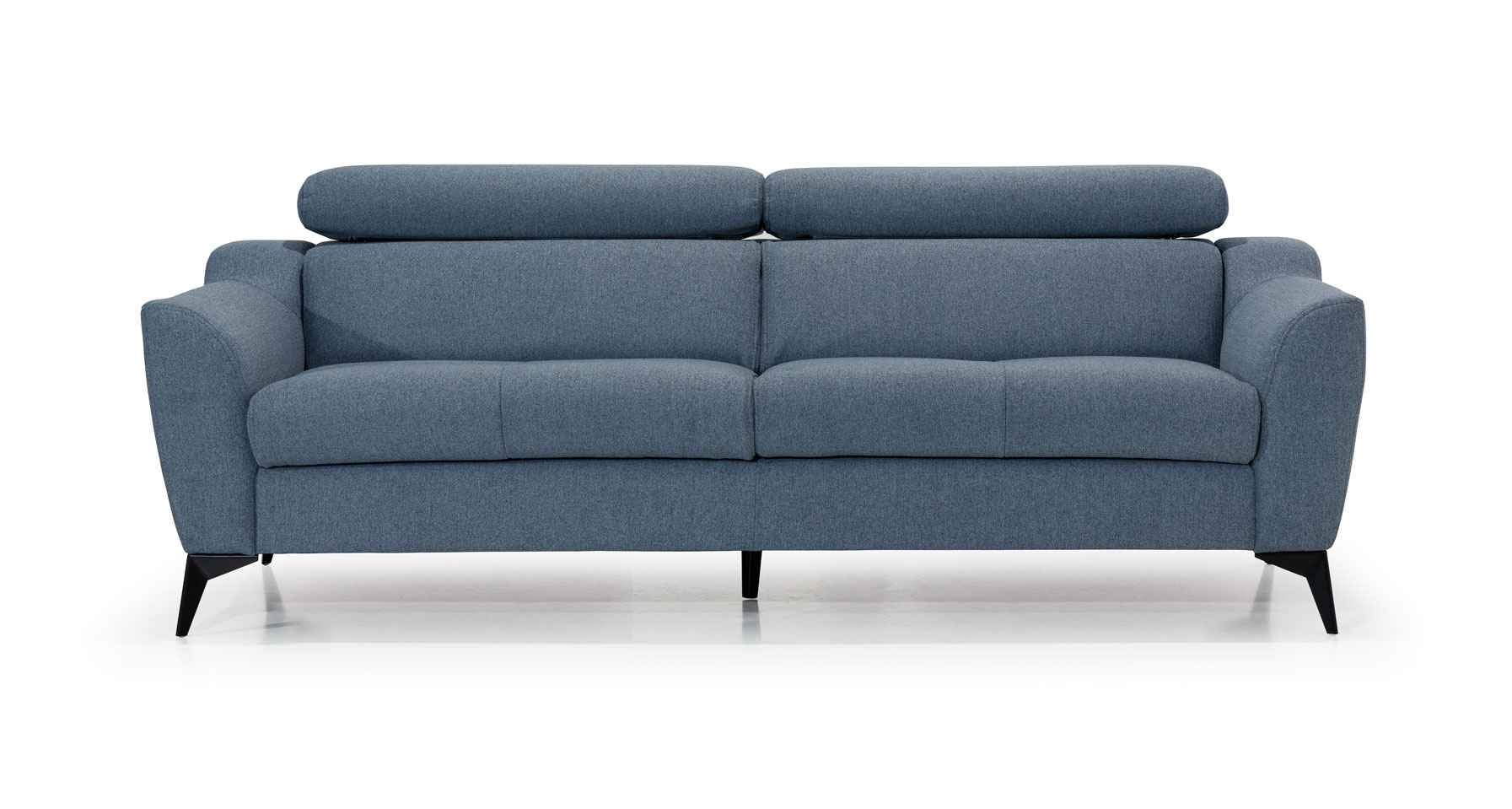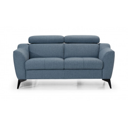 Moderní, pohodlná pohovka na nožičkách. Pohovka se vyznačuje lehkostí a elegancí a vzhledem ke svým rozměrům se vejde i do menšího obývacího pokoje. Pohovka má polohovací záhlavníky. Velký výběr potahových látek je samozřejmostí. V nabídce je i pohovka troj sedák, křeslo nebo taburet. Sedací část je vyplněná pružinovými vlnovci a PUR pěnou odolnou proti prosezení.