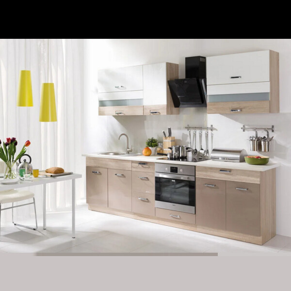Moderní sektorová kuchyně PETRA je ideální volbou, pokud Vám nevyhovují nabízené kuchyňské sestavy. Kuchyni PETRA si můžete sestavit z jednotlivých dílů podle vlastních požadavků. Součástí systému jsou všechny skříňky, bez kterých se žádná kuchyně neobejde. Kuchyňská sestava PETRA je vyrobena z kvalitního lamina. Šuplíky dolních skříněk jsou vybeveny kvalitními pojezdy. Dvířka skříněk mají tiché dovíraní (GTV). Kuchyňské skříňky májí kovové úchyty. Pokud chcete sestavu dle vlastních rozměrů a představ, zvolte kuchyňskou linku na míru PETRA.
