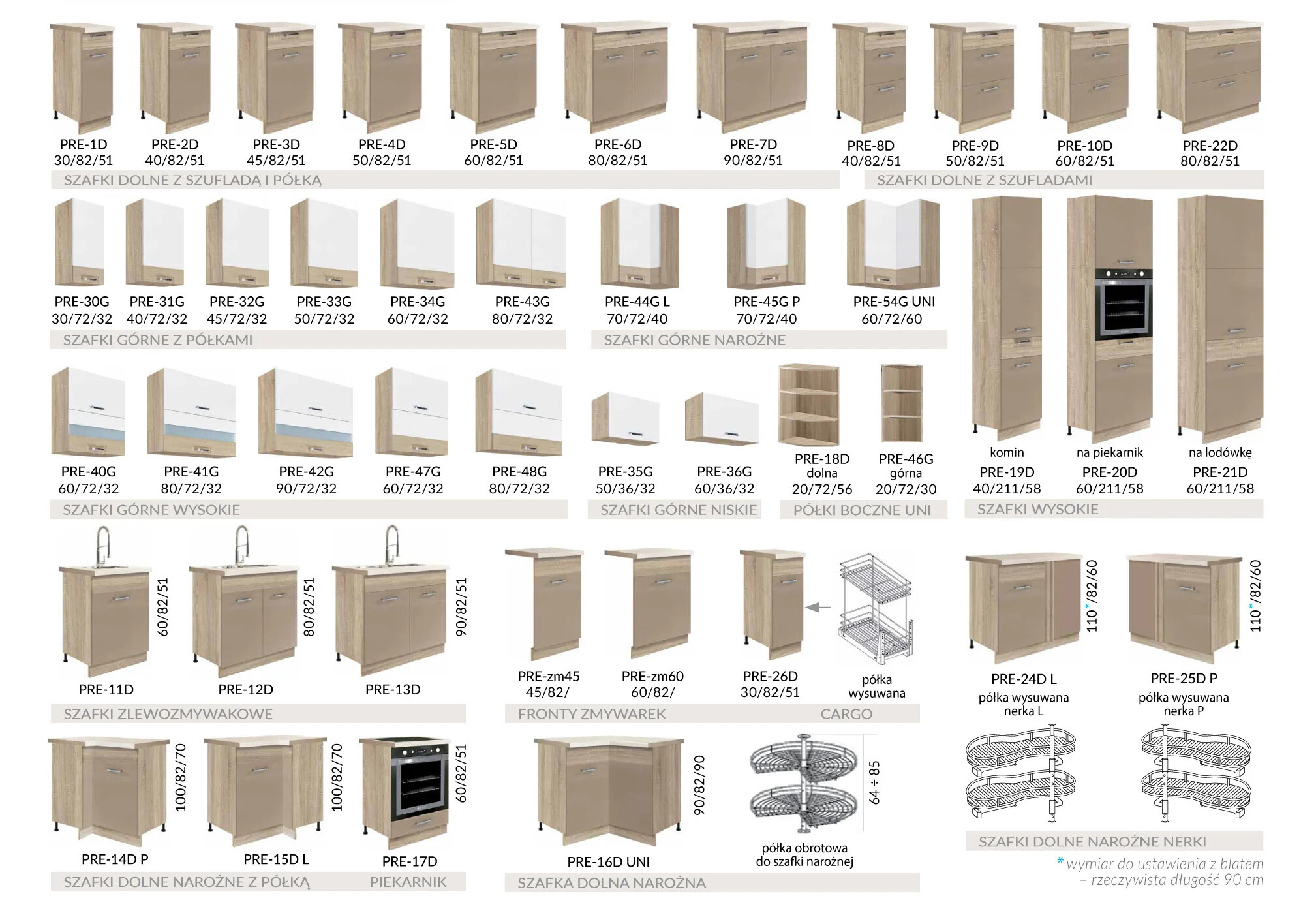 Kuchyňké skříňky PETRA si můžete objednat v provedení: