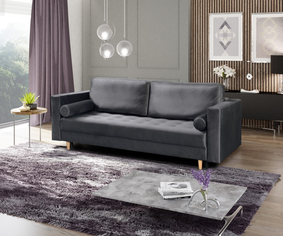 Pohovka ROKY, trojmístná pohovka je rozkladatelná s úložným prostorem, má pružinu typu bonell. Pohovku ROKY zdobí dřevěné nožky. Moderní mechanismus umožňuje rozložit pohovku do polohy na spaní mírným nadzvednutím sedáku a posunutím dopředu.