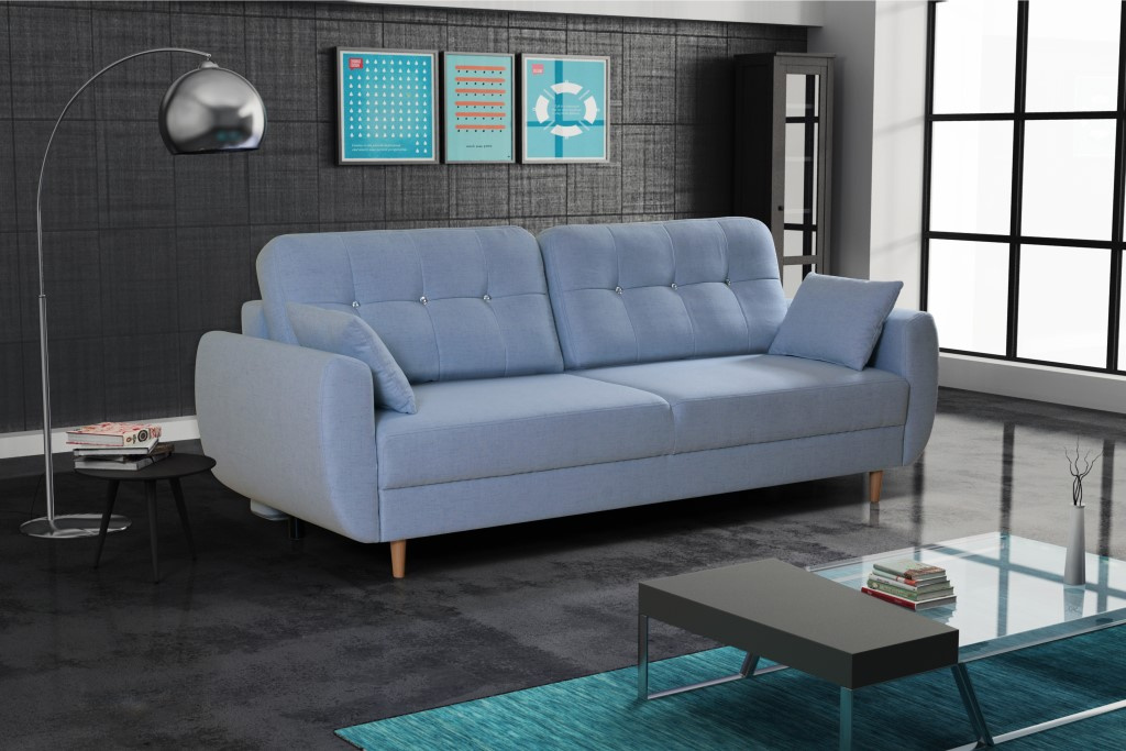 Pohovka TAMARA, trojmístná pohovka je rozkladatelná s úložným prostorem, má pružinu typu bonell. Pohovku TAMARA zdobí dřevěné nožky. Moderní mechanismus umožňuje rozložit pohovku do polohy na spaní mírným nadzvednutím sedáku a posunutím dopředu.