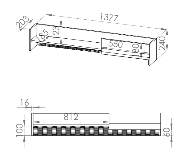 Rozměry: š. 138 cm / v. 24 cm / hl. 22 cm