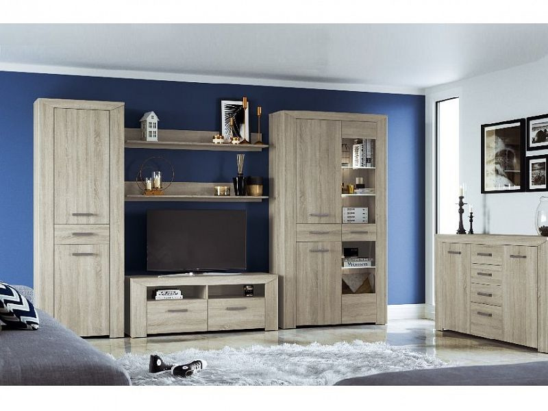 Moderní, elegantní styl v oblíbeném barevném provedení dub sonoma. Z deviti nabízených prvků hravě sestavíte atraktivní sestavu do Vašeho obývacího pokoje. Nábytek MADY je vyroben z kvalitního lamina. Úchyty jsou v elegantním kovovém provedení.