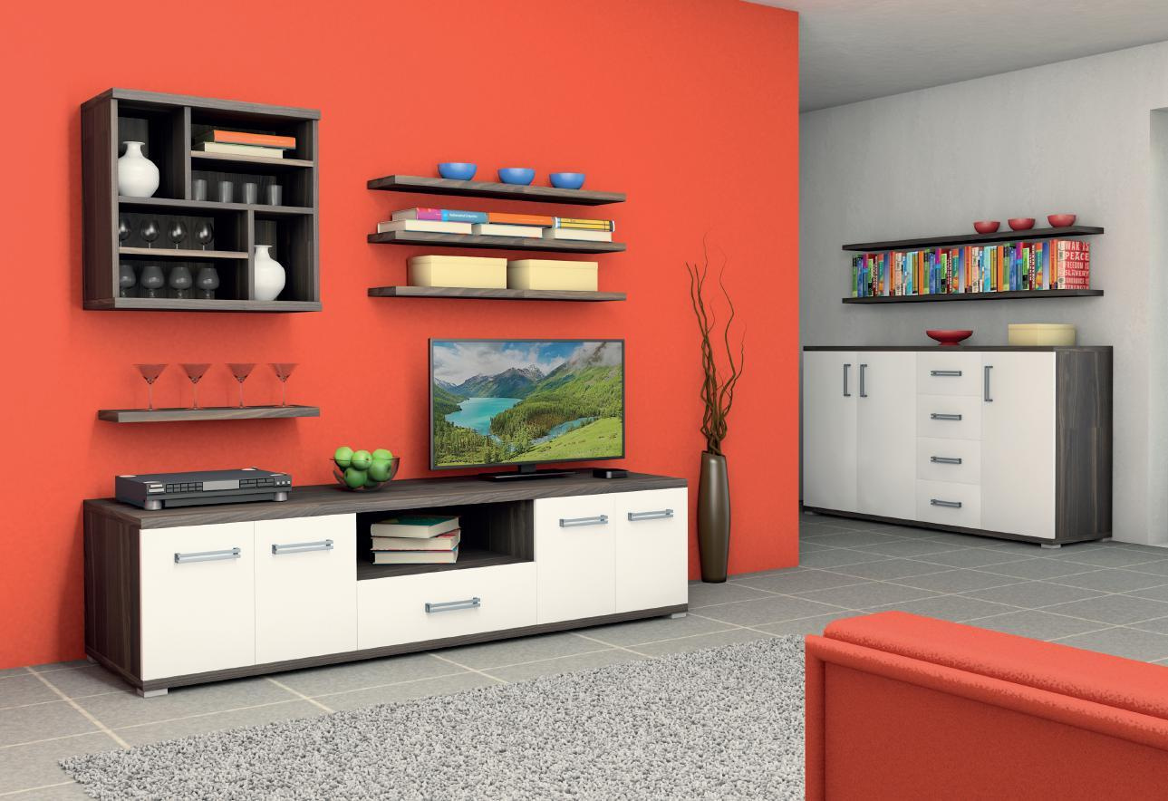 Základem nábytku jsou kvalitní materiály od renomovaných českých výrobců zaručujících hygienickou nezávadnost a vysokou odolnost po celou dobu jeho užívaní. Poctivý kus nábytku má zesílený horní i spodní díl pro větší stabilitu, pevnost a delší užívání. Vše má plnou výbavu: dotah dveří, kartáče proti prachu, zásuvky s plnovýsuvem a dotahem, panty s tlumením.Vše je vyrobeno z plošného materiálu LTD 18 a 28 mm, který je opatřen ABS hranami, kvalitními závěsy klasických i posuvných dveří. Pojezdové kolejnice a vozíky dveří jsou z odolného materiálu, který zajistí dlouhé a bezproblémové užívání. Tento sektorový nábytek vyniká vysokou variabilitou. Výběrem jednotlivých prvků máte originální obývací pokoj, útulný studentský nebo dětský pokoj, praktickou kancelář i předsíň.