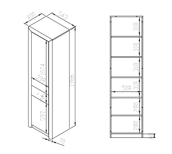 Rozměry: š. 55 cm / v. 201 cm / hl. 43 cm