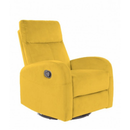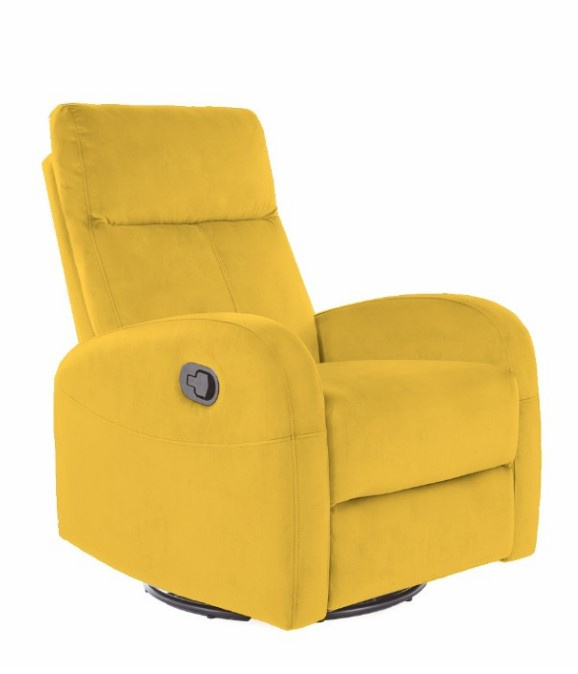 Křeslo OLYMP je pohodlný a stylový kus nábytku do vaší domácnosti. Praktické a elegantní křeslo ideální k posezení u televize. Křeslo je houpací, má příjemně široké područky, pohodlná a bohatě polstrovaná záda. Relaxační křeslo OLIMPUS je čalouněné látkou v hořčicové barvě - Bluvel 68. Látka je sametového vzhledu. Je odolná vůči oděru a žmolkování.