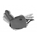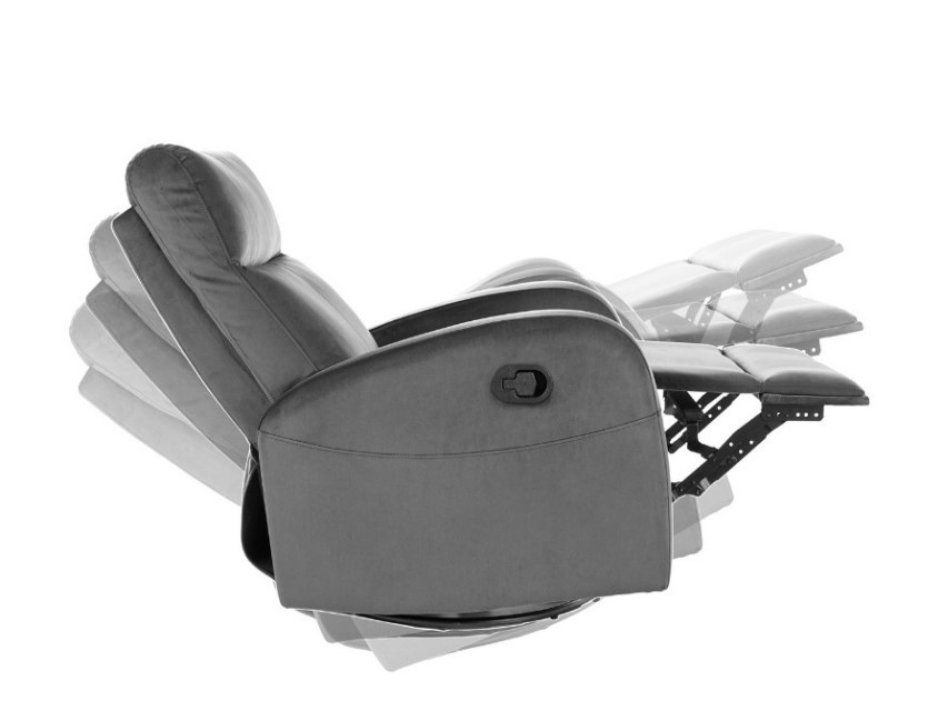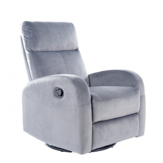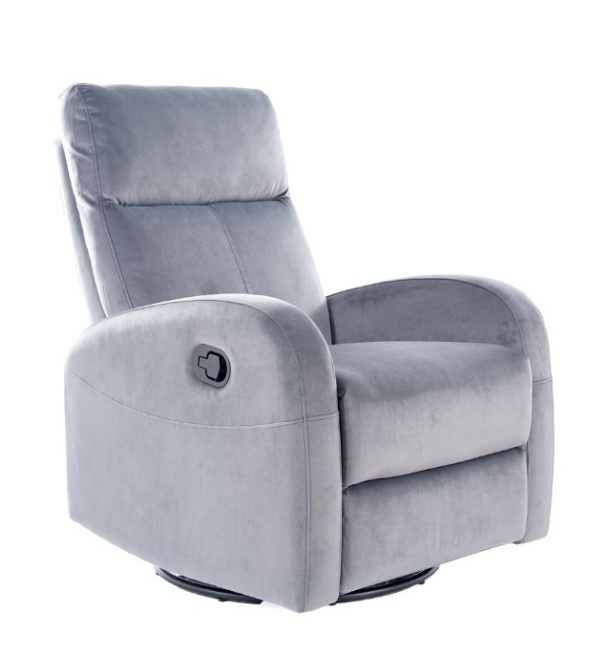 Křeslo OLYMP je pohodlný a stylový kus nábytku do vaší domácnosti. Praktické a elegantní křeslo ideální k posezení u televize. Křeslo je houpací, má příjemně široké područky, pohodlná a bohatě polstrovaná záda. Relaxační křeslo OLIMPUS je čalouněné látkou v šedé barvě - Bluvel 14. Látka je sametového vzhledu. Je odolná vůči oděru a žmolkování.