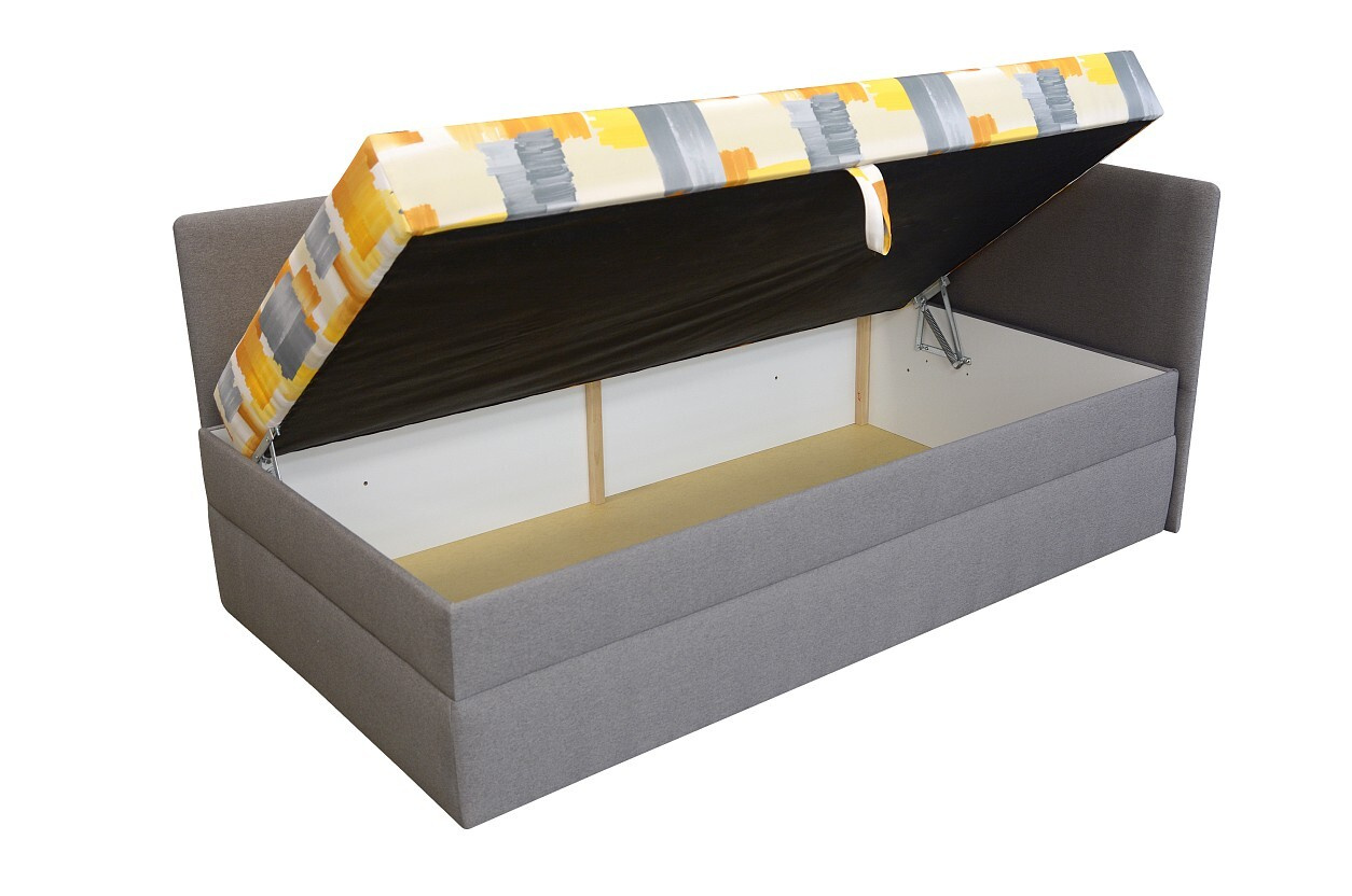 HONEY je široká rohová postel s čely. Postel je celočalouněná s Bonell pružinovou matrací a úložným prostorem. Postel s čely HONEY je očalouněná látkou v šedé barvě ETNA 91 / N 101 šedooranžový vzor. Orientaci čel si můžete vybrat v pravém nebo levém provedení. Nadstandartní výška sedu je 57 cm.