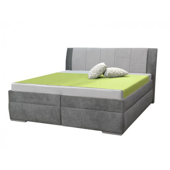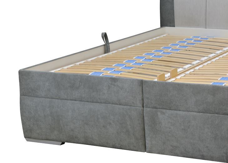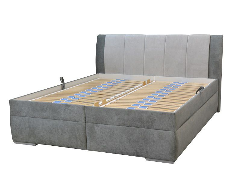 Dvoupostel BETA je očalouněná kvalitní látkou v kombinaci šedá / světle šedá. Postel má pohodlné čelo vysoké 109 cm. Výška sedu je 48 cm bez matrací. Lamelové rošty s bočním výklopem pro pohodlný přístup do úložného prostoru.