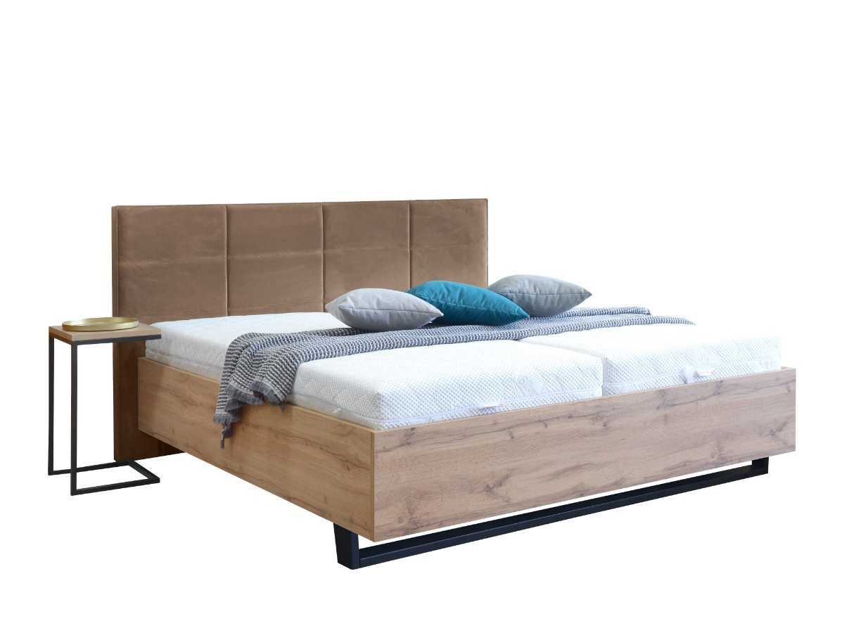 Dvoupostel EDISSON je kombinovaná dřevo + látka. Korpus je vyroben z lamina v barvě Dub pobřežný a čelo je čalouněné látkou v hnědošedé barvě. Postel má pohodlné čelo vysoké 113 cm. Výška spací plochy je 60 cm s taštičkovou matrací Fines. Lamelové rošty s bočním výklopem pro pohodlný přístup do úložného prostoru.