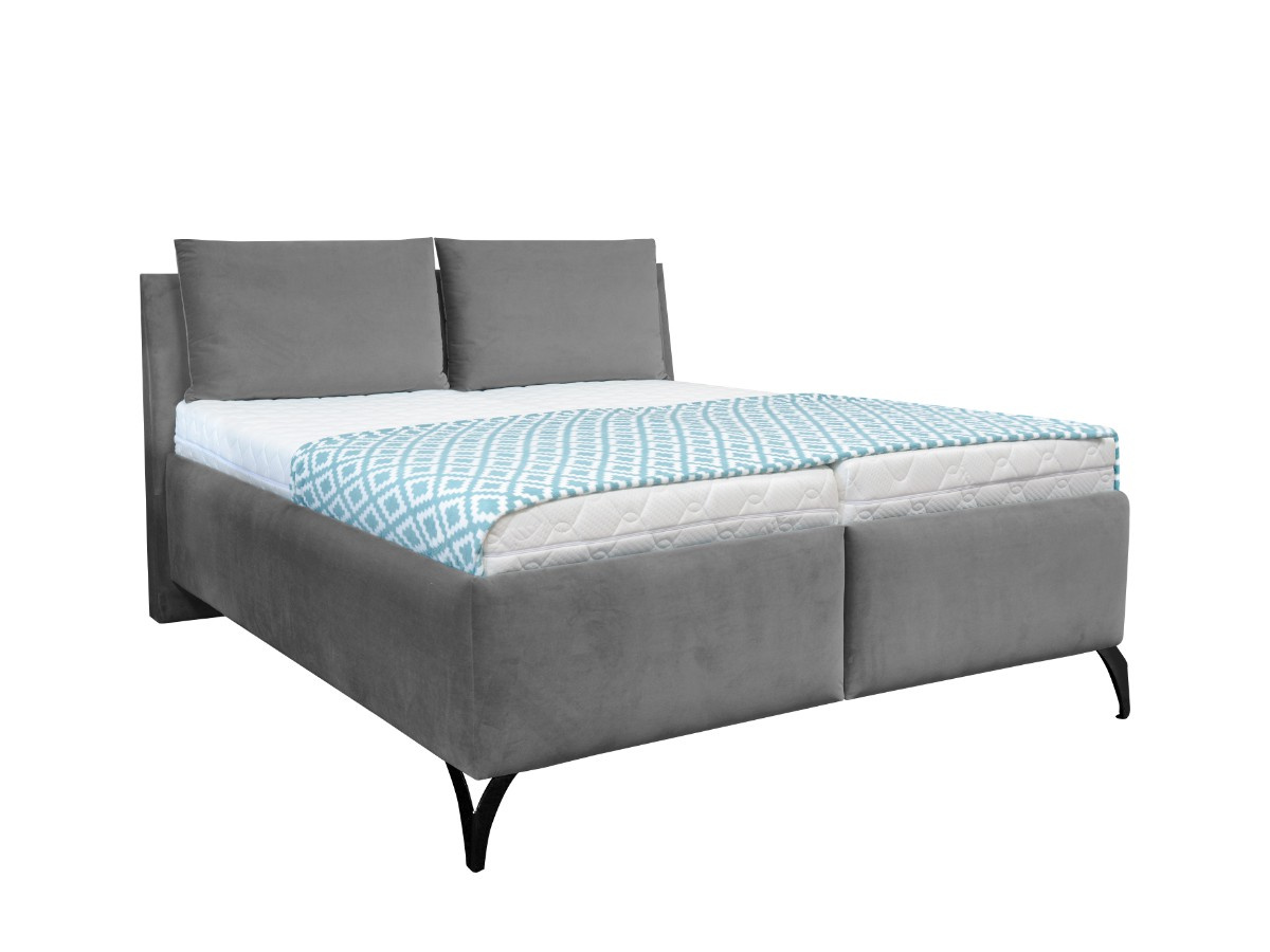 Dvoupostel LUSSIA je očalouněná kvalitní látkou v šedé látce ( CD15 - semišová hebká látka). Postel má pohodlné čelo vysoké 107 cm s dvěma polštáři. Výška spací plochy je 67 cm s taštičkovou matrací Fines. Lamelové rošty s bočním výklopem pro pohodlný přístup do úložného prostoru.