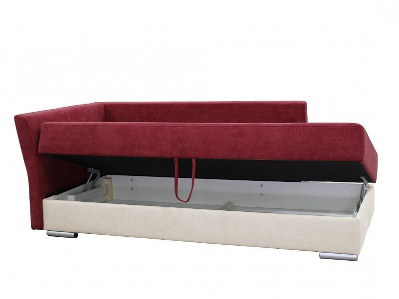 FLOYD je rohová pohovka s čely. Postel je celočalouněná s Bonell pružinovou matrací a úložným prostorem. Postel s čely FLOYD je očalouněná v kombinaci vínové a béžové látky Alfa 12 / Alfa 01. Můžete si vybrat pravé nebo levé provedení čel. Výška sedu je 44 cm. Součástí pohovky jsou dva pohodlné opěrné polštáře i dva ozdobné polštáře.
