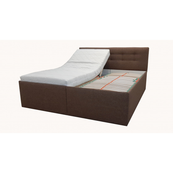 Dvoupostel ADÉLA je očalouněná kvalitní látkou ve vašem výběru. Postel má pohodlné čelo, vysoké 102 cm ozdobené 10 kusy potažených knoflíků. Výška sedu je 46 cm bez matrací. Polohovací lamelový rošt zpevněný středovým popruhem s pohodlným přístup do úložného prostoru od nohou. Matrace nejsou v ceně postele. Ty je možné dokoupit z naší nabídky. Určeno pro 2 matrace o velikosti 90 x 200 cm nebo 80 x 200 cm