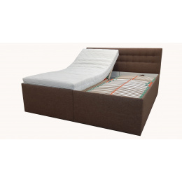 Dvoupostel ANETA je očalouněná kvalitní látkou ve vašem výběru. Postel má pohodlné čelo, vysoké 102 cm ozdobené 22 kusy potažených knoflíků. Výška sedu je 46 cm bez matrací. Polohovací lamelový rošt  zpevněný středovým popruhem s pohodlným přístup do úložného prostoru od nohou. Matrace nejsou v ceně postele. Ty je možné dokoupit z naší nabídky. Určeno pro 2 matrace o velikosti 90 x 200 cm nebo 80 x 200 cm