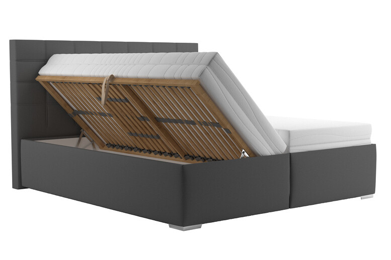 Základem postele je kvalitní lamelový rošt s bočním výklopem s nastavením tuhosti lamel a s popruhem proti přetížení.