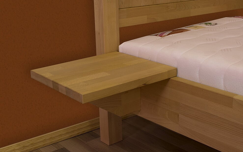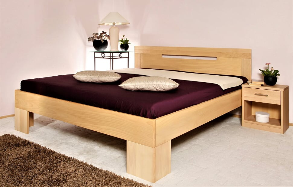 Luxusní masivní postel vyrobená z průběžného buku, který zajišťuje celistvý vzhled dřeva. K výjimečnosti této kvalitní postele přispívá zaoblení hran a její zvýšená lehací plocha ve výšce 50 cm s několika možnostmi nastavení výšky matrace od podlahy. Charakteristický moderní designový vzhled jí dodává obdélníkový otvor v čele postele. Tloušťka masivu celé 3 cm. Kvalitní dřevěné postele s jednoduchou montáží. Vyznačují se vysokou kvalitou zpracování a stabilností. Postele lze kombinovat se všemi typy matrací a roštů, které nabízíme. Zaujmou oblíbeným designem a výraznou přírodní strukturou. Všechny hrany jsou zaoblené a díky bezbarvému a zdravotně nezávadnému laku je zajištěna jejich odolnost vůči vnějším vlivům. Postele jsou baleny v kartonech, součástí balení je kování a návod k použití.