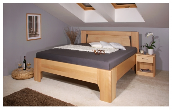 Kvalitní masivní postel vyrobená z průběžného buku, který zajišťuje celistvější vzhled dřeva. Vzhledné zpracování postele nabízí zaoblené tvary v podobě vykrojeného čela a vykrojené přední části u nohou. Provedení v 4 cm tloušťce u předních nohou přispívá k celkové bytelnosti postele. Kvalitní dřevěné postele s jednoduchou montáží. Vyznačují se vysokou kvalitou zpracování a stabilností. Postele lze kombinovat se všemi typy matrací a roštů, které nabízíme. Zaujmou oblíbeným designem a výraznou přírodní strukturou. Všechny hrany jsou zaoblené a díky bezbarvému a zdravotně nezávadnému laku je zajištěna jejich odolnost vůči vnějším vlivům. Postele jsou baleny v kartonech, součástí balení je kování a návod k použití.