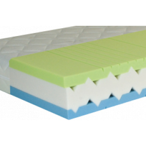 Matrace Wellnes: Výhodou matrace je, že pro spojení jednotlivých vrstev matrace není použito lepidlo. Je tedy možnost praktického rozložení jednotlivých dílů při čistění. Horní strana matrace - měkčí, je opatřena kvalitní VISCO línou pěnou, která působením tělesného tepla měkne a pružně se přizpůsobuje tvaru těla. Spodní strana matrace - tvrdší je z extra výběrové HR - studené pěny, která zásadně ovlivňuje kvalitu matrace a je profilovaná do 7 anatomických zón. Střed jádra matrace je navržen a profilován jako AIR SYSTÉM tak, aby zajistil odvětrání, změkčení a špičkový komfort matrace. Potah Aloe Vera, snímatelný, dělený zip a pratelný na 60. Doporučená nosnost 140 Kg. Výška matrace je 26 cm.
