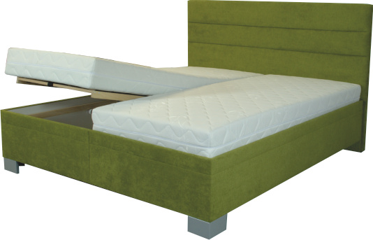 Nožky postele jsou vysoké 10 cm a můžete si zvolit dřevěné nebo kovové.