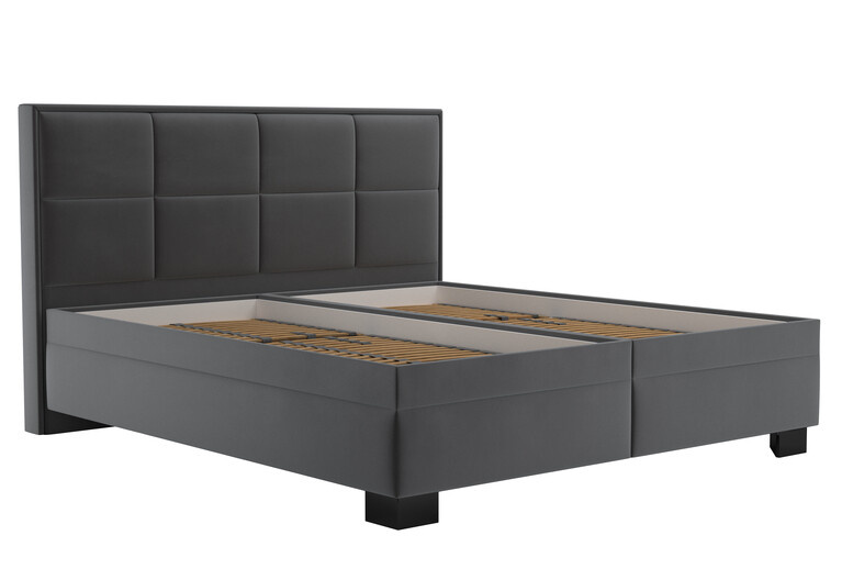 Základem postele je kvalitní polohovací lamelový rošt s výklopem od nohou, s nastavením tuhosti lamel a s popruhem proti přetížení.