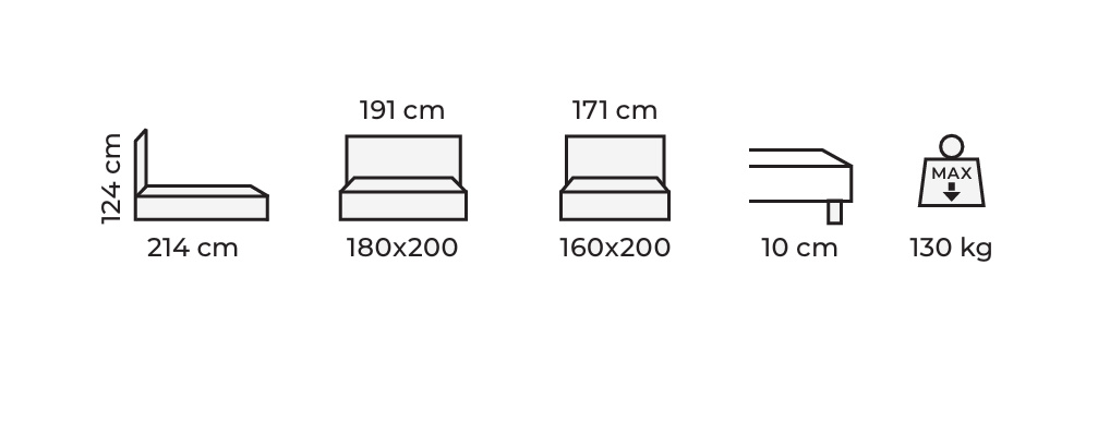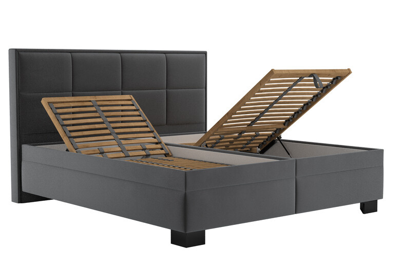Základem postele je kvalitní polohovací lamelový rošt s výklopem od nohou, s nastavením tuhosti lamel a s popruhem proti přetížení.