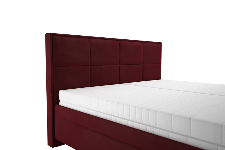 Luxusní dvoulůžko ELA s vynikajícími ortopedickými vlastnostmi a mimořádnou výškou lehací plochy s vysokým prošívaným čelem. Velmi oblíbené dvoulůžko ELA je vyráběno v rozměru 180x200 cm. Manželská postel ELA, je charakteristická svým prošívanými čelem do tvaru čtverců. Součástí postele je kvalitní polohovací lamelový rošt. V akční nabídce je postel ELA ve vínové potahové látce Tiffany 32.