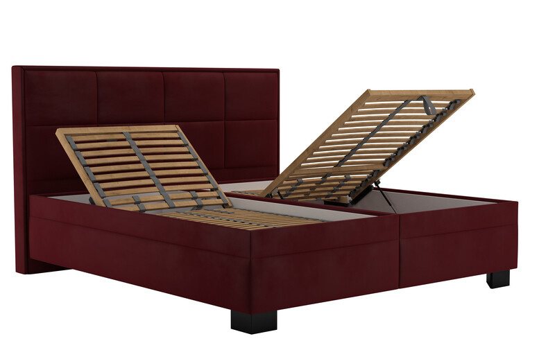 Základem postele je kvalitní polohovací lamelový rošt s výklopem od nohou, s nastavením tuhosti lamel a s popruhem proti přetížení.