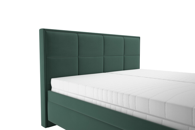 Luxusní dvoulůžko ELA s vynikajícími ortopedickými vlastnostmi a mimořádnou výškou lehací plochy s vysokým prošívaným čelem. Velmi oblíbené dvoulůžko ELA je vyráběno v rozměru 180x200 cm. Manželská postel ELA, je charakteristická svým prošívanými čelem do tvaru čtverců. Součástí postele je kvalitní polohovací lamelový rošt. V akční nabídce je postel ELA v zelené potahové látce Tiffany 10.