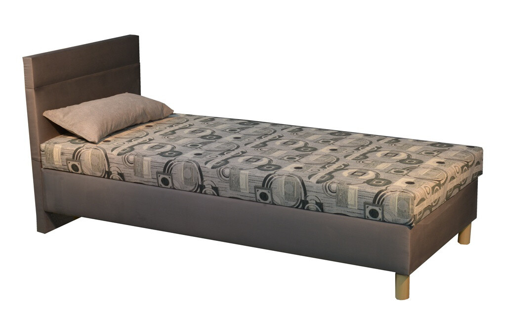 Moderní designová postel s krátkým čelem - ELITE 110. S pevným lamelovým roštem, PUR matrací, velkým úložným prostorem v bílém laminu s odvětrávacími otvory. Přístup do úložného prostoru je z boku postele. Lehací plocha postele je 110 x 200 cm. Možno objednat i variantu lehací plochy 140 x 200 cm. Matrace zajišťuje dokonalý odpočinek a dobrou kvalitu spánku. Možnost prošití povrchu postele za příplatek.