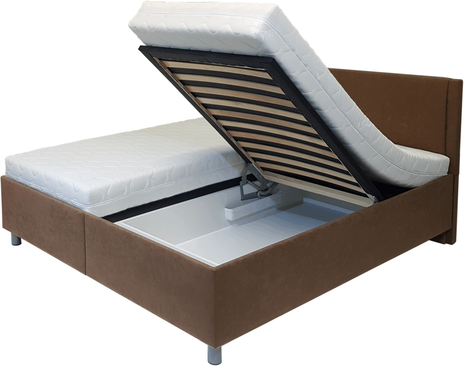 Nožky postele jsou vysoké 10 cm a můžete si zvolit dřevěné nebo kovové.