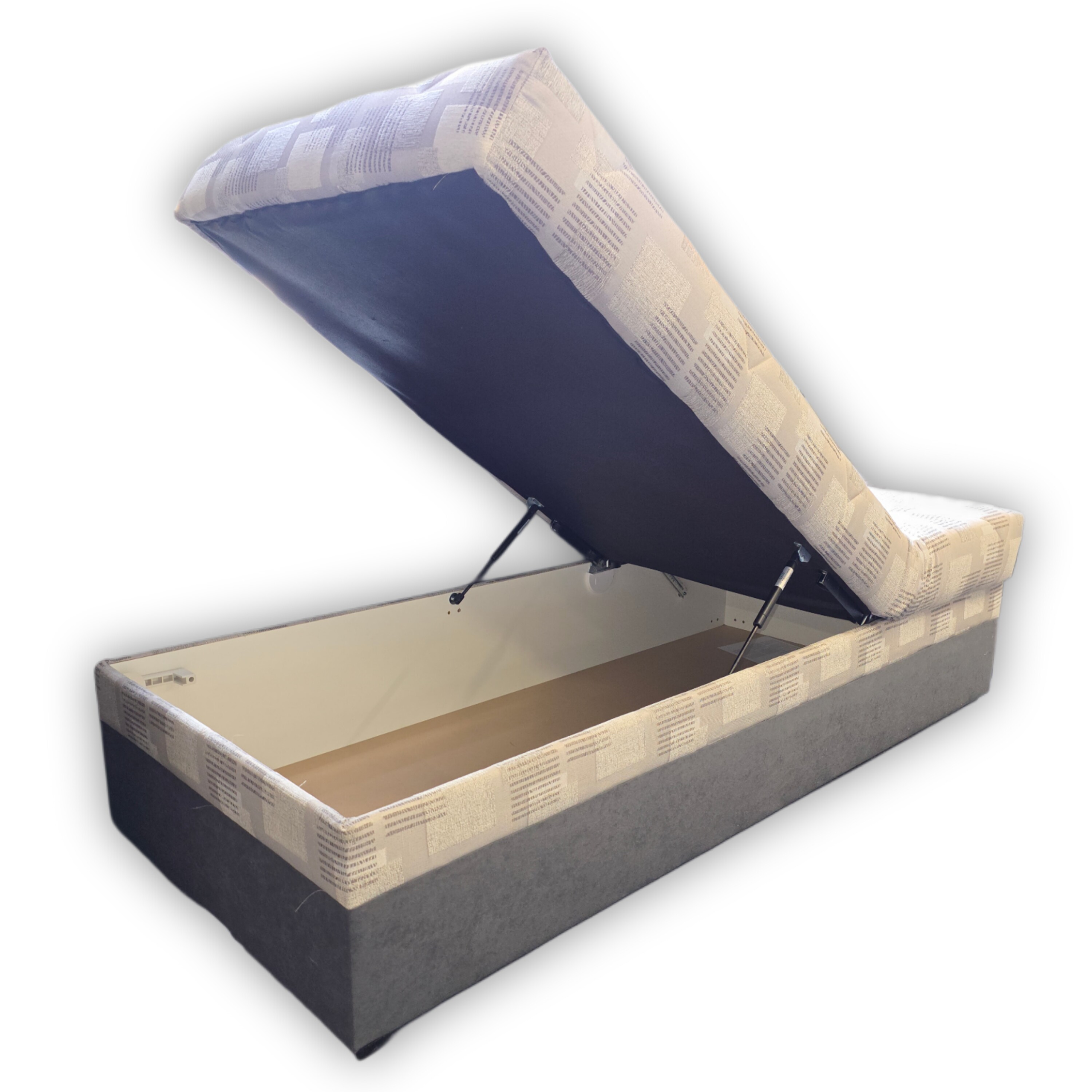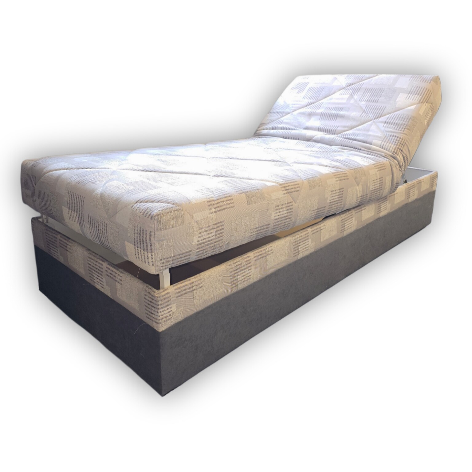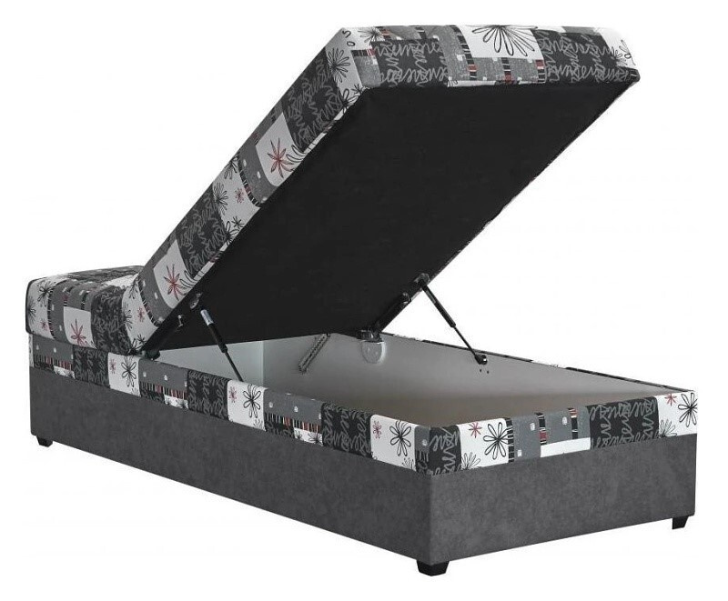 Polohovací válenda EVELÍNA s kvalitní matrací z elastické PUR pěny, uloženou na polohovacím lamelovém roštu - polohování hlavy a nohou. Prostorný úložný prostor je přístupný od nohou postele pomocí plynových pístů. Předností postele EVELÍNA je zvýšená výška ložné plochy, která umožňuje pohodlné vstávání z postele bez namáhání kloubů. Ložná plocha postele je 90x200cm. Kvalitní postel od ČESKÉHO VÝROBCE. Potahová látka, kombinace - Molisoft 81 / Kristen 8057-2