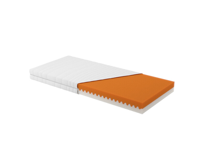 Matrace NELLY z kvalitních pěn vyrobena bez použití lepidel. Jádro je složeno z desek z polyuretanových pěn o nižší [žlutá pěna] a vyšší [růžová pěna] tuhosti, což umožňuje výběr měkčí a tvrdší strany matrace. Výška matrace v potahu je cca 15 cm. Matrace je opatřena snímatelným potahem. Doporučená nosnost do 110 kg.