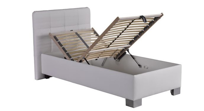 Kvalitní postel 120x200 cm se dodává bez matrace nebo s volně loženou sendvičovou matrací NELLY uloženou na polohovacím lamelovém roštu (polohování hlava + nohy, 28 lamel, nastavení tuhosti, popruh proti přetížení). Úložný prostor přístupný od nohou. Otevírání úložného prostoru pomocí plynových pístů. Potahová látka KOŽENKA : LOFT 1