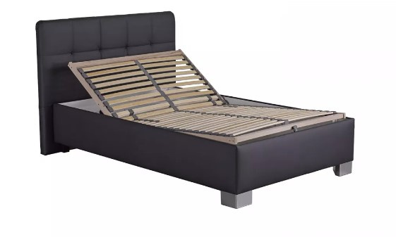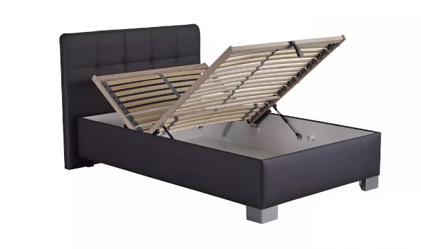Kvalitní postel 120x200 cm se dodává bez matrace nebo s volně loženou sendvičovou matrací NELLY uloženou na polohovacím lamelovém roštu (polohování hlava + nohy, 28 lamel, nastavení tuhosti, popruh proti přetížení). Úložný prostor přístupný od nohou. Otevírání úložného prostoru pomocí plynových pístů. Potahová látka KOŽENKA : LOFT GREY