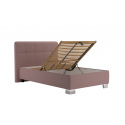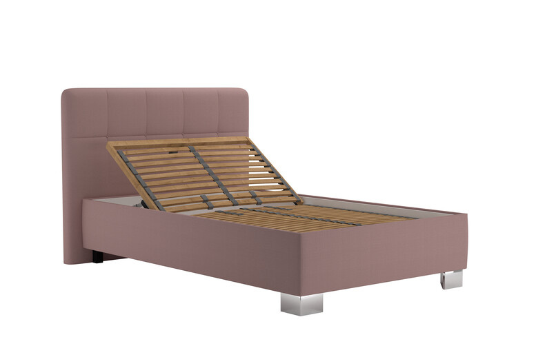 Moderní postel 90x200 cm se dodává bez matrace nebo s volně loženou sendvičovou matrací NELLY uloženou na polohovacím lamelovém roštu ( polohování hlava + nohy, 28 lamel, nastavení tuhosti, popruh proti přetížení ). Úložný prostor je přístupný od nohou. Otevírání úložného prostoru pomocí plynových pístů. Potahová látka - ENJOY 19 - flamingo.