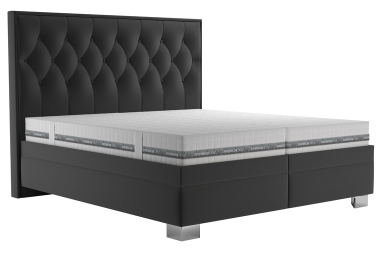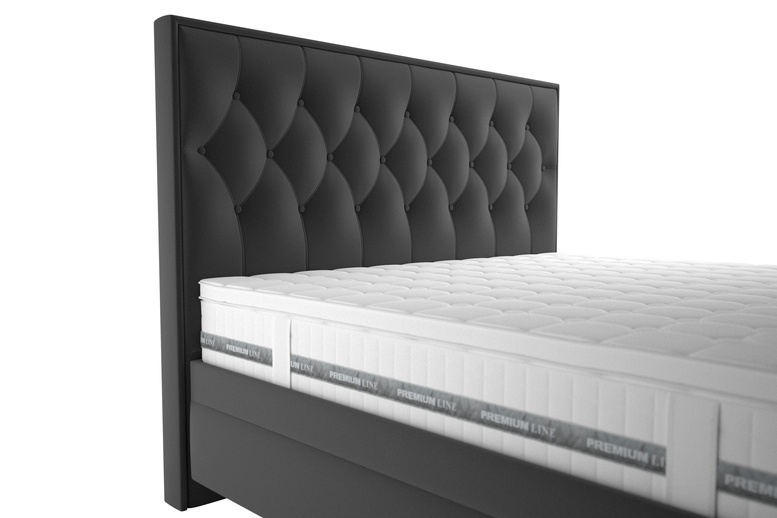 Luxusní dvoulůžko KERSTIN s vynikajícími ortopedickými vlastnostmi a mimořádnou výškou lehací plochy s vysokým prošívaným čelem. V akční nabídce je postel Kerstin v potahové látce RIVIERA 95 - černá.